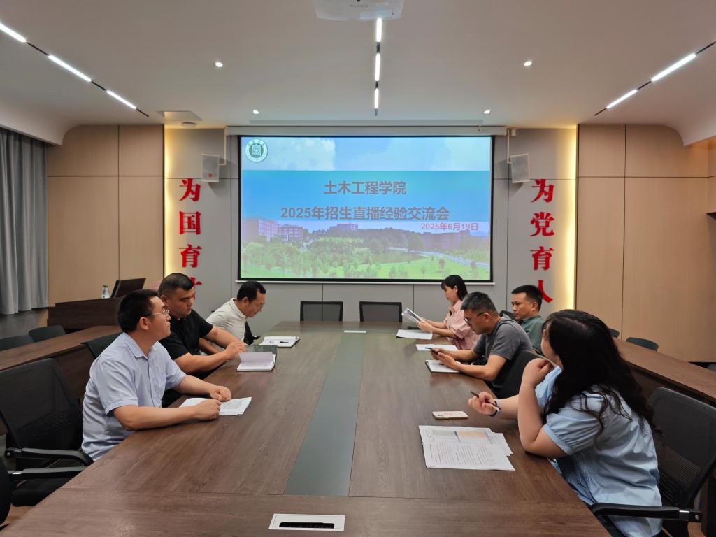 为复盘6月18日首场直播亮点与不足,提炼宝贵经验,为后续系列招生直播注入更强劲动能与智慧支撑。6月19日,土木工程学院召开2025年本科招生直播经验交流会。学院党总支书记徐远东、教学副院长杨子泉、学工干事徐超及直播教师参与会议。会议由徐超主持。