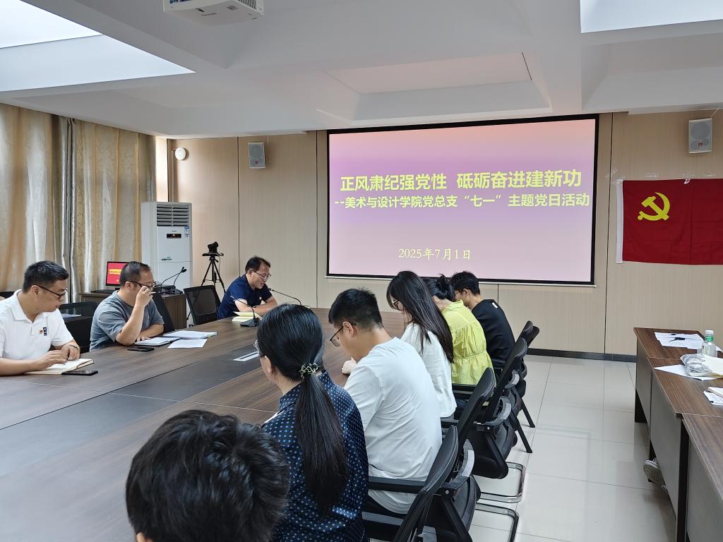 在中国共产党成立104周年之际,为推动深入贯彻中央八项规定精神学习教育走深走实,美术与设计学院党总支于7月1日在215会议室,举行了“正风肃纪强党性 砥砺奋进建新功”七一主题党日活动。全体教师党员参加了活动,党总支书记郑山峰主持了活动。