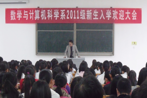 9月19日下午,数学与计算机科学系在3号教学楼113教室召开新生入学教育大会,系主任郝涌教授、全体教师及2011级新生共300余人参加了会议,大会由学工秘书余兴旺主持。