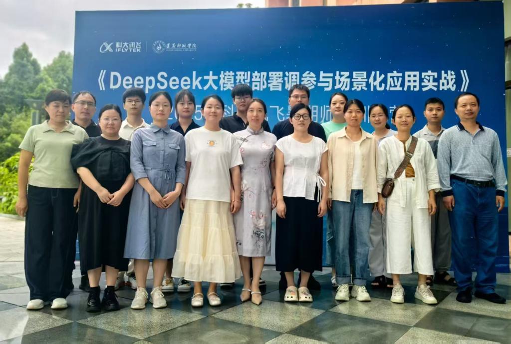 为了进一步加强师资队伍建设,提升教师聚焦技术前沿及其应用实践能力,7月23—27日,大数据与人工智能学院组织选派了17位教师参加了由科大讯飞股份有限公司主办、遵义师范学院承办的“DeepSeek大模型部署调参与场景化应用实战”暑期师资训练营。本次活动由智慧教育大数据现代产业学院院长贾彦茹带队。