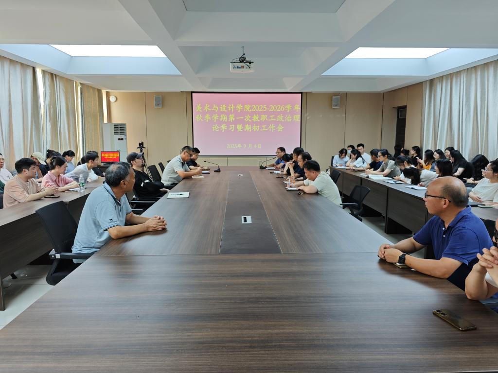 9月4日下午,美术与设计学院在艺术楼215会议室召开2025—2026学年秋季学期第一次教职工政治理论学习暨期初工作会。党总支书记郑山峰、教学副院长王伟以及全体教师参加了会议。郑山峰主持了会议。