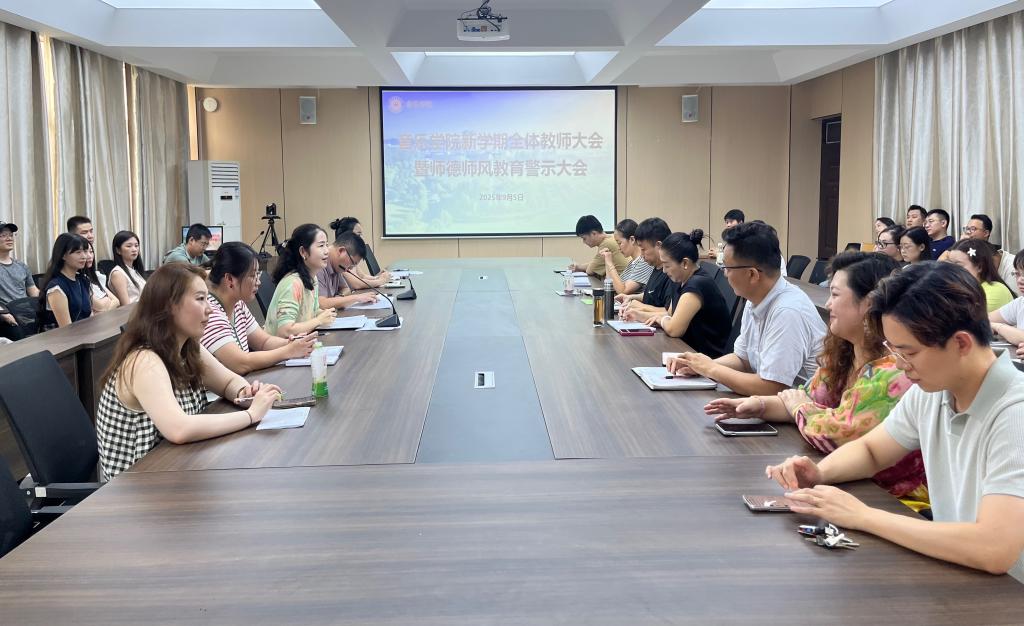 9月5日下午,音乐学院在艺术楼215会议室召开全体教师大会暨师德师风警示教育大会,传达学校有关会议要求,安排部署新学期工作。党总支书记郝昊、副院长杨辉以及全体教师参加了会议。郝昊主持了会议。