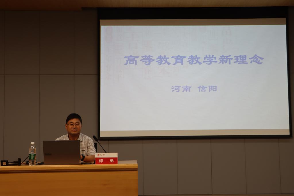 9月4日下午,教师教学发展中心在图书馆101会议室组织了本学期首场专题讲座。讲座邀请信阳师范大学课程与教学改革研究所所长、教育科学学院副院长郭勇教授担任主讲嘉宾。郭勇教授以“高等教育教学新理念”为题向来自全校各学院的七十余名教师梳理了当前形势下的高等教育教学新理念。讲座由教师教学发展中心主任孟宪乐主持。