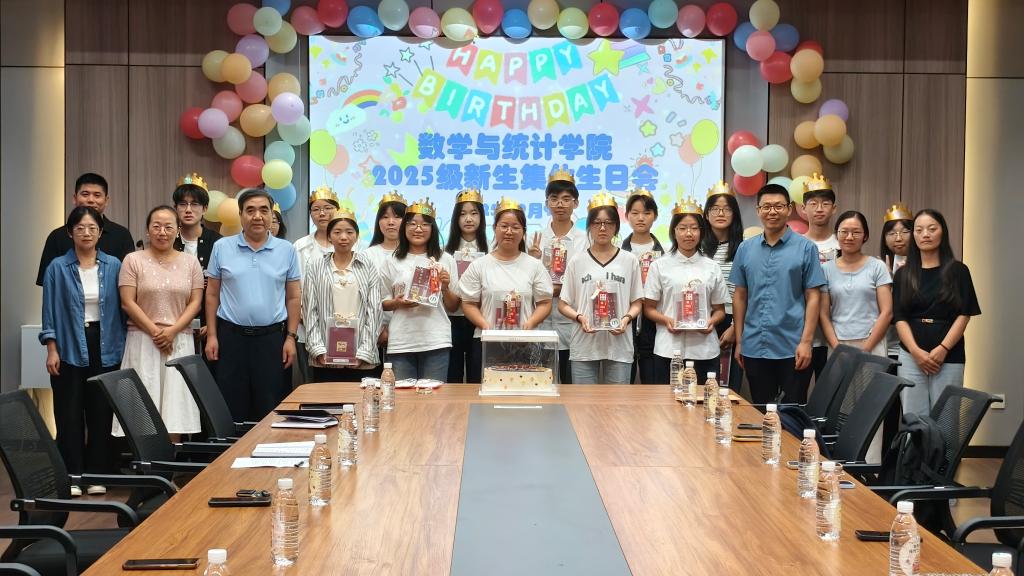 随后,学院全体领导老师为新生戴生日帽,送上伴手礼,共唱生日歌,分享蛋糕。歌声里满是温暖,不少新生眼中泛起感动的泪光。新生们纷纷表达感谢。有同学表示“这是第一次在异乡过集体生日,老师的陪伴让我特别温暖,感觉自己真正融入了数学与统计学院这个大家庭”。