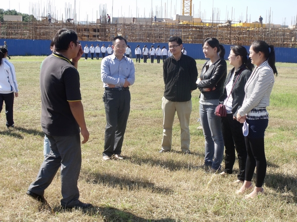 9月14日上午,外语系主任罗德喜带领系学生工作人员到操场看望军训中的2012级学子。