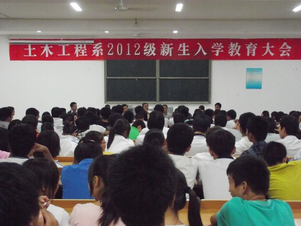 2012年9月17日晚,土木工程系2012级新生入学教育大会在理工楼113教室召开。主任张伯平、副主任潘卫国、各秘书、辅导员及2012级全体新生参加了会议。会议由行政秘书盛大俊主持。