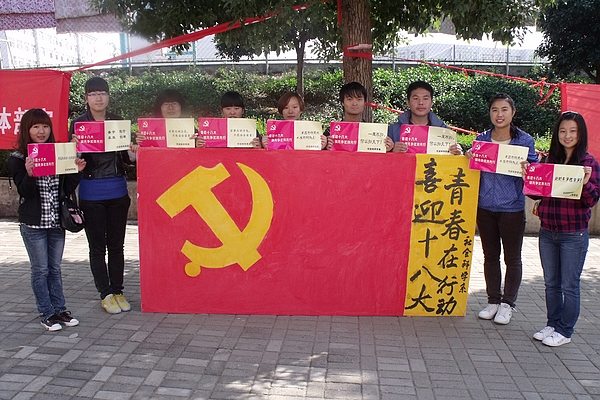 10月31日,社会科学系开展了“喜迎十八大,文明标语校园行”活动。活动中,该系党校学员在各教学楼、宿舍楼与图书馆张贴“百事文明为先,万思安全最重”,“道路的转折处,人生的转折点!”等文明标语,引导学生文明修身,用实际行动迎接党的十八大胜利召开。
