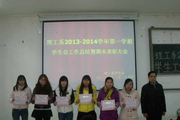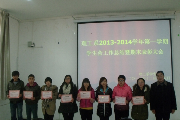 12月25日中午,理工系召开2013-2014学年第一学期学生工作总结暨表彰大会。系主任魏明坤、副主任管文水、党总支副书记兼学工秘书陈俊、教学干事高永平、团总支书记耿家先及全体辅导员参加此次大会。