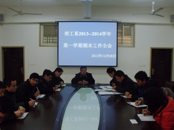 12月26日下午,理工系召开2013-2014学年第一学期期末工作全会。系主任魏明坤、副主任管文水以及系全体教师参加了会议,会议由行政秘书杨晓杰主持。
