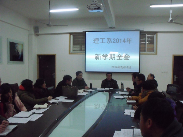 2月16日下午,理工系2014年新学期全会在教三楼会议室召开。系主任魏明坤、副主任管文水及全体教师参加了会议。