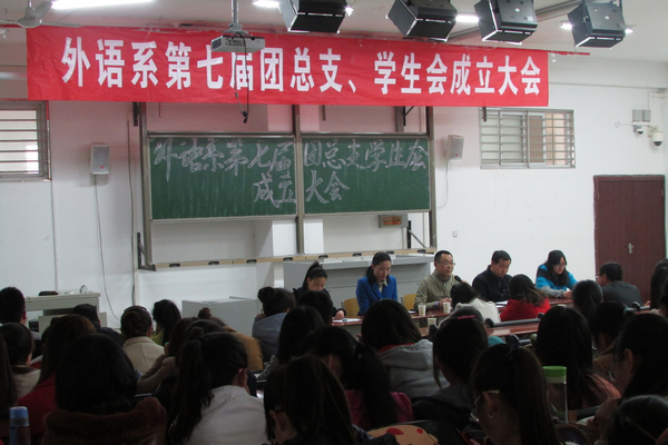 日前,外语系第七届团总支、学生会成立大会在图书馆102教室召开,系主任罗德喜教授、学工干事李肖利、郝长燚、各辅导员老师与全系学生干部参加了会议。会议由郝长燚主持。