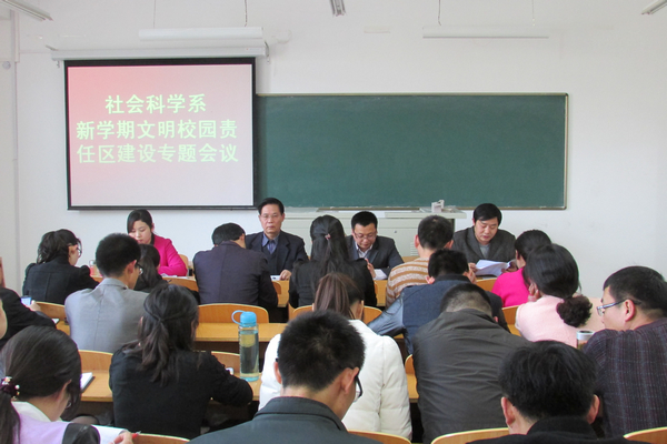 3月26日下午,社会科学系在教四楼207教室召开文明校园责任区建设专题会议。该系主任陈录生教授和全体教师参加了会议,会议由教学秘书张红梅主持。