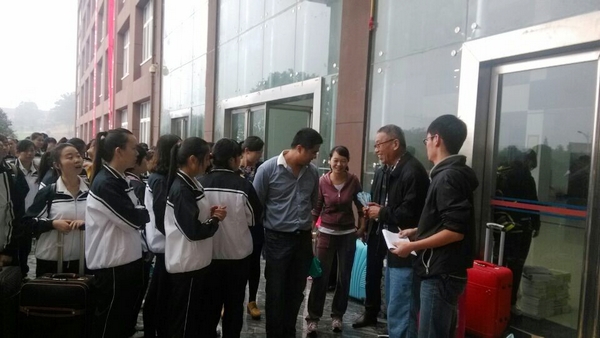 9月16日上午,中文系主任傅瑛教授带领系秘书到军训场地看望2014级学生,并查看了教材发放情况。
