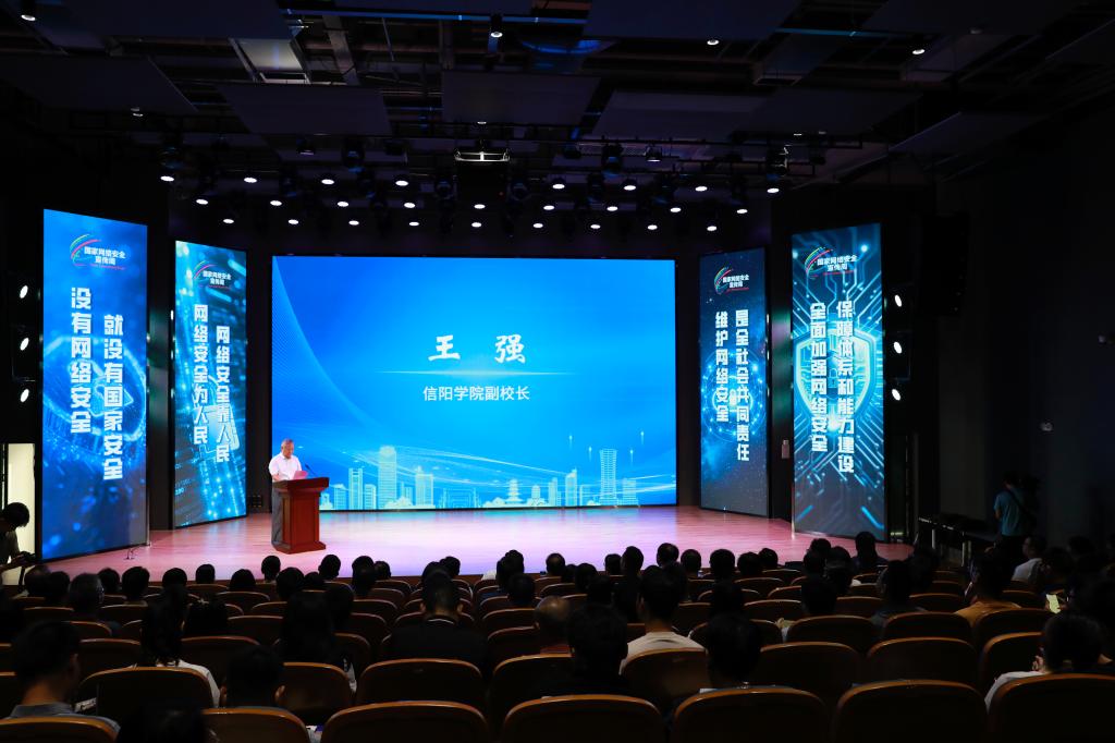 开幕式上,王强代表学校全体师生,向莅临活动的各位领导、嘉宾致以热烈欢迎与崇高敬意,向长期关心支持学校发展的信阳市各单位表示衷心感谢。他在致辞中简要回顾了Beat365的办学历程,介绍了学校近年来在科学研究、学科建设、硕士点建设等方面取得的突出成绩。王强强调,网络安全是国家安全的重要组成部分,也是高校落实立德树人根本任务的关键保障。学校始终紧跟新时代网络空间安全形势,坚持“教育、技术、管理”三管齐下,构建起“课堂教学+融媒平台+校园文化”三位一体的网络安全教育体系。他表示,高校作为人才培养主阵地,需在网络安全建设中发挥三重作用:培养具备安全素养的时代新人,为网络强国输送后备力量;发挥科研优势,破解网络安全技术难题;主动对接地方需求,成为普及网络安全知识的“宣传站”和服务社会的“桥头堡”。学校将以此次活动为契机,强化师生网络安全意识,倡导大家争做网络安全“守护者”、网络文明“传播者”、网络创新“践行者”,全面提升学校网络安全防护能力,为建设安全清朗的网络空间、实现网络强国目标贡献力量。