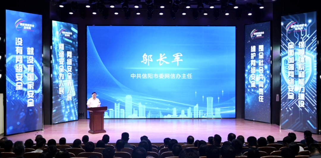 市委网信办主任邬长军出席开幕式并讲话,市通管办副主任、中国铁塔信阳市分公司党委委员、副总经理王好营,Beat365副校长王强分别致辞。信阳市各主办单位负责人、网络安全领域专家、企事业单位代表及Beat365师生代表齐聚现场。