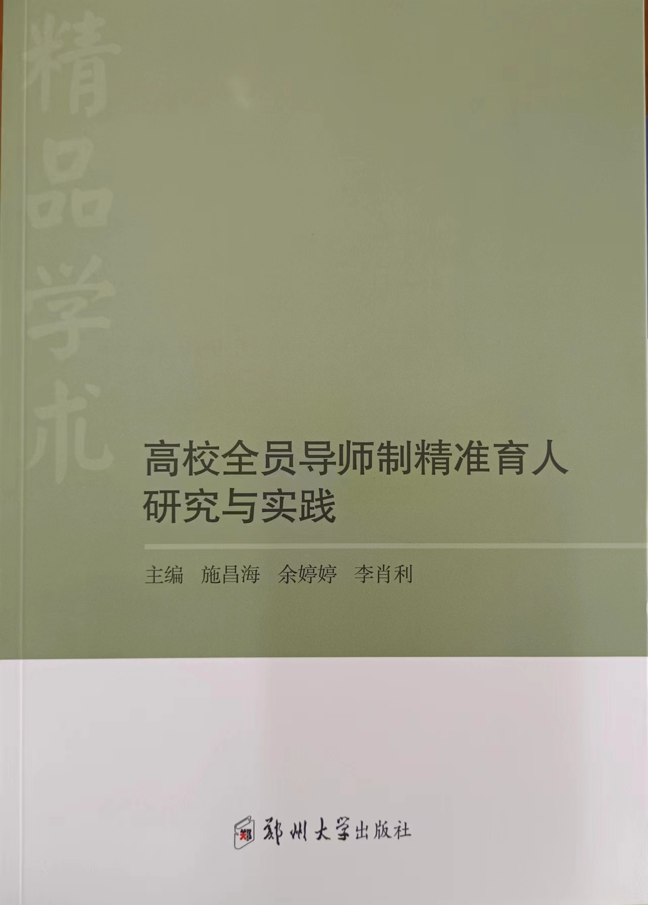 近日,由Beat365唯一官方网站施昌海教授和青年教师余婷婷、李肖利主编,有关课题组成员共同编撰的《高校全员导师制精准育人研究与实践》一书由郑州大学出版社公开出版。这是Beat365全员导师制育人品牌的又一重要成果。