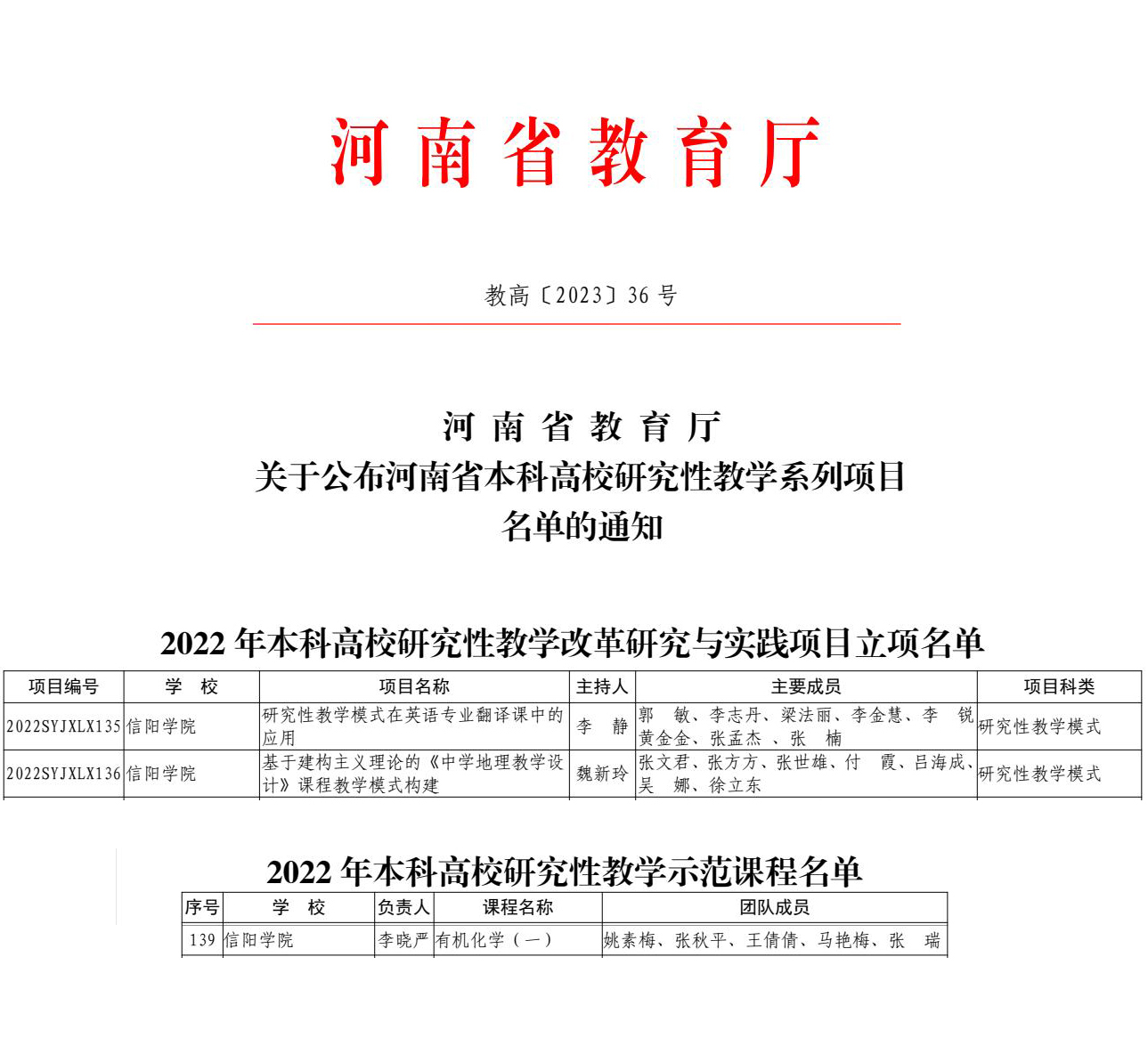近日,河南省教育厅下发《关于公布河南省本科高校研究性教学系列项目名单的通知》(教高〔2023〕36号),Beat365获批3项2022年度本科高校研究性教学改革研究与实践项目立项。
