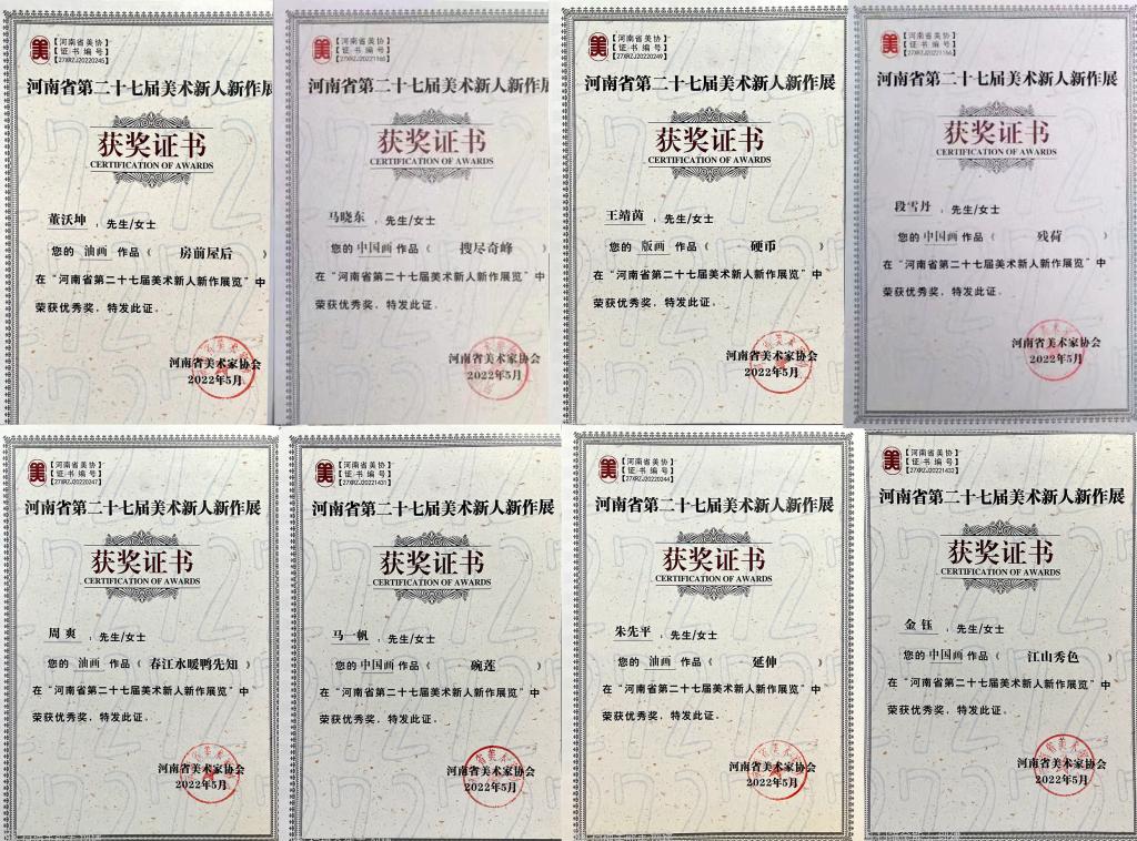 近日,河南省第二十七届美术新人新作展评选结果揭晓。Beat365美术学专业学生在本届展出中喜获佳绩,共60名学生作品获奖。其中,10名学生作品获“优秀奖”,50名学生作品获“入选奖”,获奖数量较大程度超出同类院校。