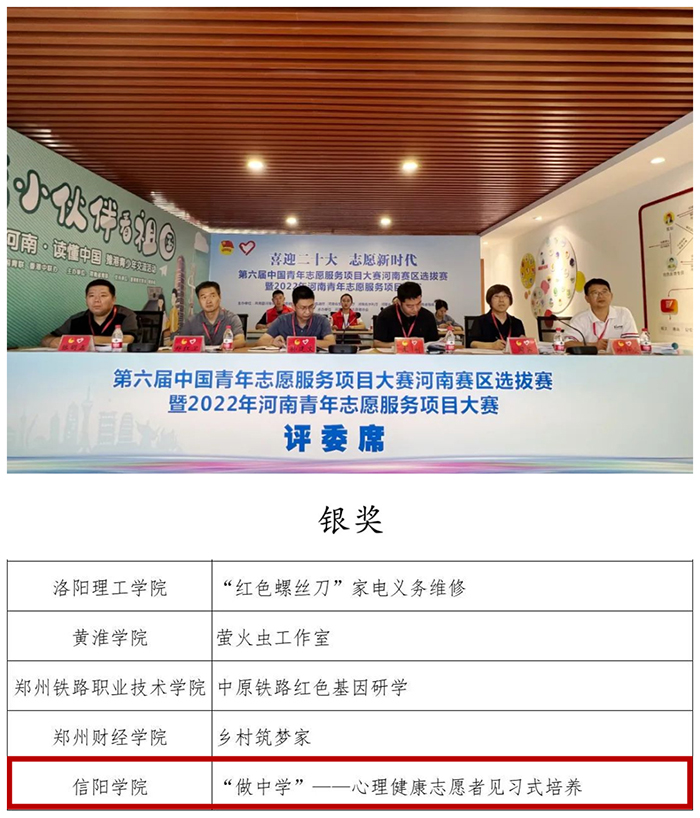 9月14日至15日,“喜迎二十大、志愿新时代”——第六届中国青年志愿服务项目大赛河南赛区选拔赛暨2022年河南青年志愿服务项目大赛在郑州成功举办。Beat365推选的“做中学”——心理健康志愿者践习式培养项目,在本次比赛中喜获银奖。