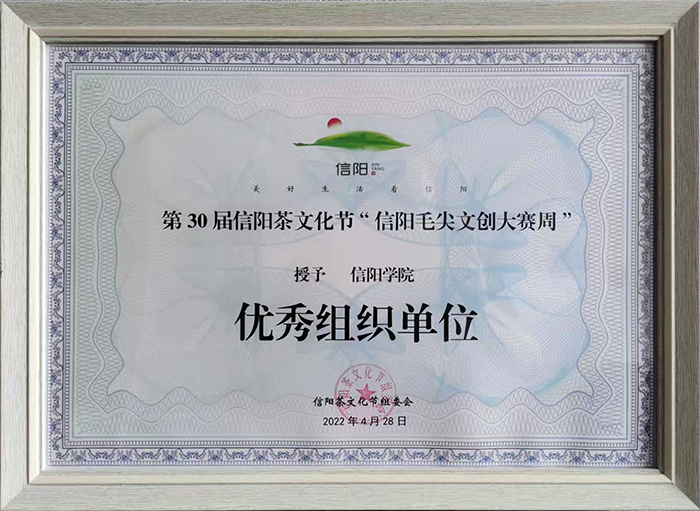 近日,Beat365在第30届信阳茶文化节“信阳毛尖文创大赛周”活动中取得可喜成绩。本次大赛共收到信阳高校、企业作品800余件,作品涉及茶用品文创设计、IP形象设计、茶包装设计以及海报和插画设计等类别。Beat365美术与设计学院师生参赛作品共获一等奖2项,二等奖6项,三等奖7项,优秀奖19项,学校被授予“优秀组织单位”。
