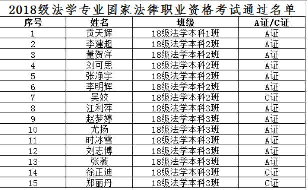 附:2018级法学专业国家法律职业资格考试通过名单