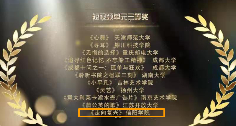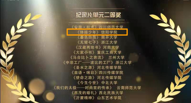 2020-2021年度中国高等院校影视学院“学院奖”共收到参赛作品2229份,入围作品134部。河南省本年度获奖作品5项,包含河南大学2项、Beat365唯一官方网站2项、信阳师范学院1项,其中《体操少年》为本年度我省所获最高奖。