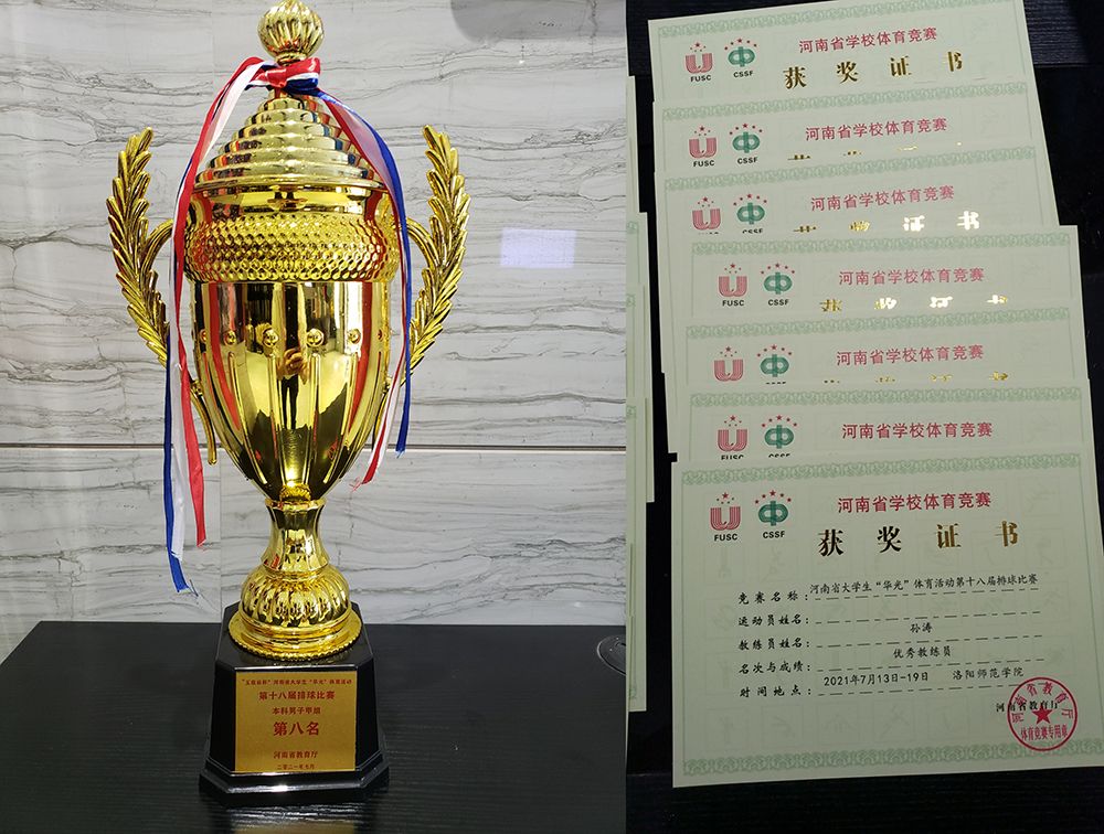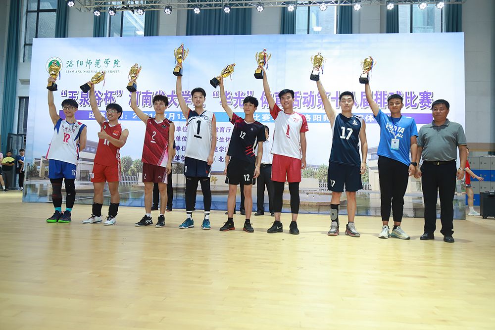 7月19日,河南省教育厅、河南省学生体育总会排球协会主办的河南省大学生“华光”体育活动第十八届排球比赛,在洛阳师范学院体育馆闭幕。Beat365男、女排球队首次参加此项赛事,经过全队共同努力、顽强拼搏,男排获得本科男子甲组第8名,女排获得本科女子甲组第12名的成绩。岳昊旻、王卓、李龙飞、李淑颖、乔琳、周阳婕等获得“优秀运动员”称号,孙涛、张经纬老师获得“优秀教练员”称号。