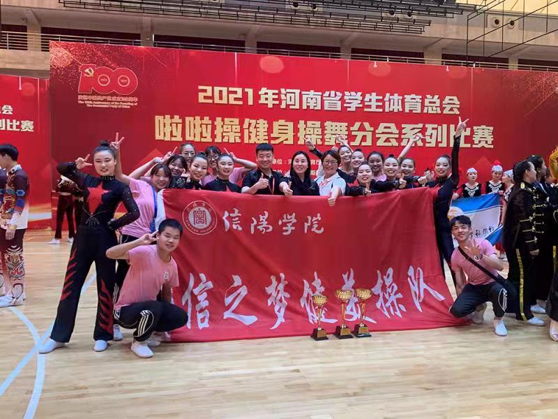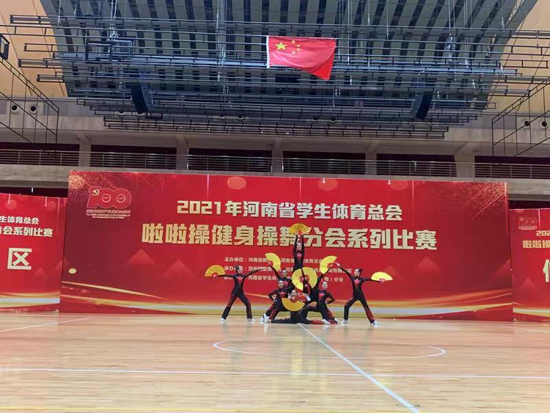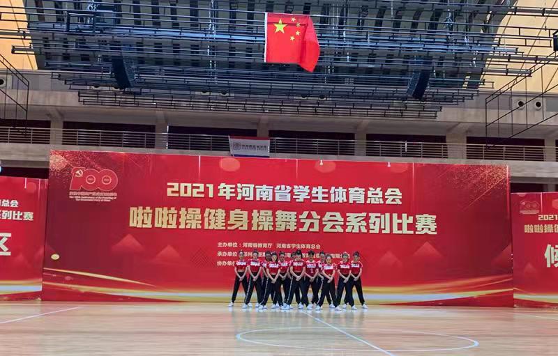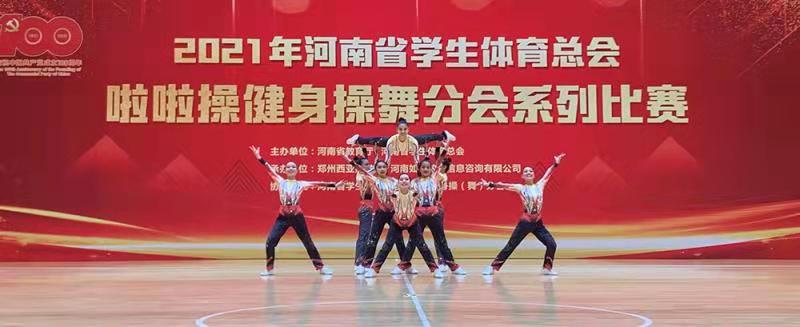 7月16日,由河南省教育厅、河南省体育局、河南省学生体育总会主办,河南省学生体育总会啦啦操健身操(舞)分会协办的“2021年河南省学生体育总会啦啦操健身操舞分会系列比赛”,在郑州西亚斯学院综合体育馆落下帷幕。Beat365唯一官方网站健美操代表队参加了有氧健身操自选徒手、有氧健美操自选轻器械、排舞规定动作三个项目的自选动作比赛,经过激烈角逐,获得有氧健身操自选徒手、有氧健美操自选轻器械两个特等奖和排舞规定动作一等奖,剧红梅、马奎获得“优秀教练员”称号。