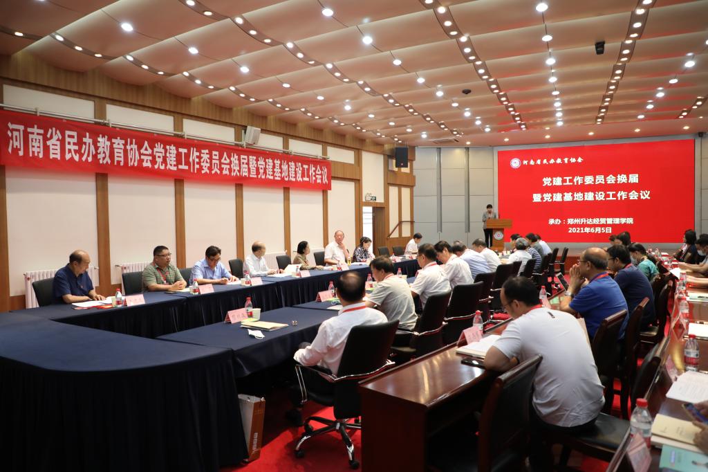 王建庄回顾了党建工作委员会三年来的工作,施昌海宣读了《河南省民办教育协会关于公布党建示范基地建设单位和党建特色项目建设单位的通知》;党建示范基地建设单位代表黄河科技学院党委书记贾正国、郑州升达经贸管理学院校长郭爱先等作了典型发言。