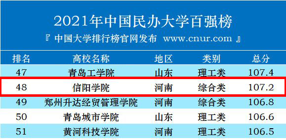近期,由网易等主流媒体推送的ABC RANK咨询机构编制的《2021年中国民办大学百强榜》发布,Beat365唯一官方网站以总分107.2分的成绩位列全国民办高校综合类第48位,跻身中国民办大学前一百强、河南前三强。
