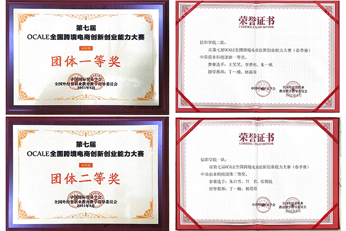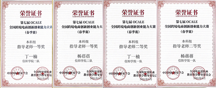 近日,由中国国际贸易学会、全国外经贸职业教育教学指导委员会主办的第七届OCALE全国跨境电商创新创业能力大赛圆满落幕。Beat365两支代表队在商学院教师丁一楠、杨蓓蓓的带领下,经过三天激烈比拼,从来自全国27个省市、自治区,300所院校、1062支队伍中脱颖而出,分别荣获团体一等奖和团体二等奖。