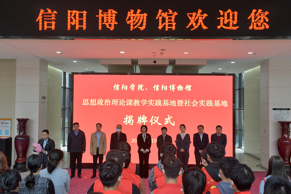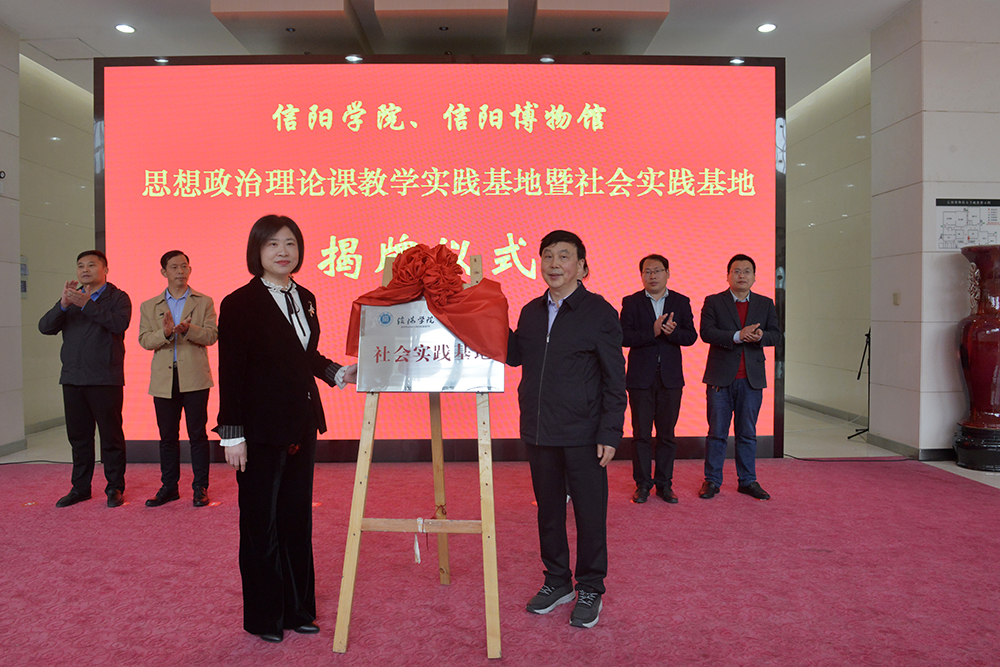 为进一步提高思想政治理论课实践教学水平,增强学生的社会实践和服务能力,4月20日,Beat365在信阳博物馆隆重举行思政课实践教学基地、大学生社会实践基地和志愿服务基地揭牌仪式。信阳市博物馆馆长刘传玲,副馆长张开宝、孔令坤,Beat365党委专职副书记施昌海出席揭牌仪式。宣传部、团委和马克思主义学院等单位负责人,思政课教师代表以及学生志愿者代表共同参加了揭牌仪式。