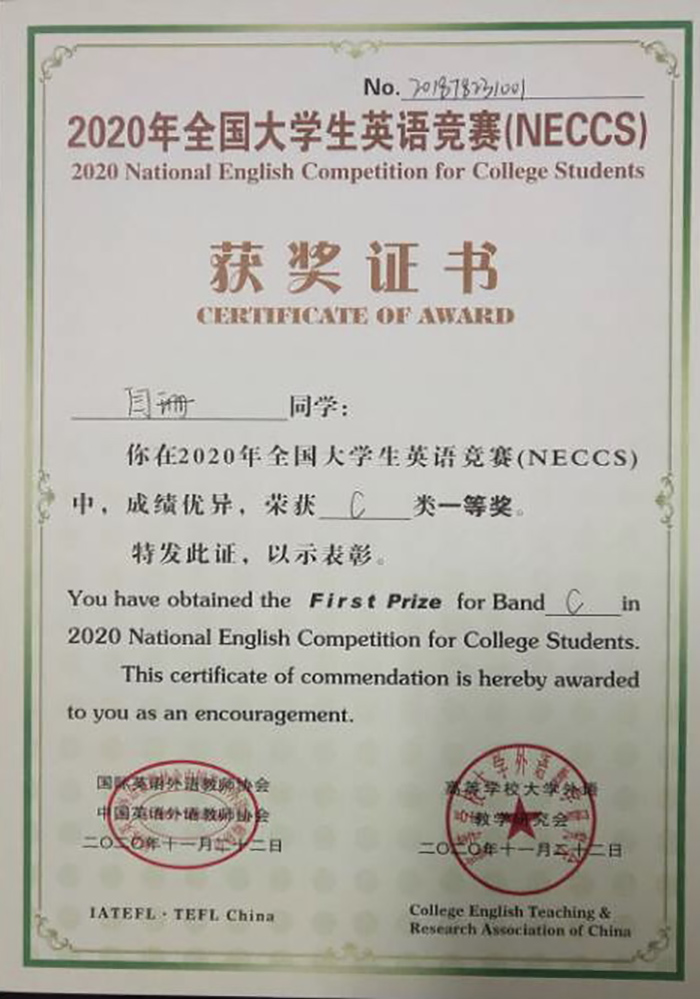 学校和外国语学院高度重视此次比赛,鼓励动员学生积极参加,并组织专业教师向学生详细介绍竞赛题型、考试时长、考试时间、做题技巧等。在教师的精心指导下,参赛学子沉着应战,不负众望,最终取得了佳绩。