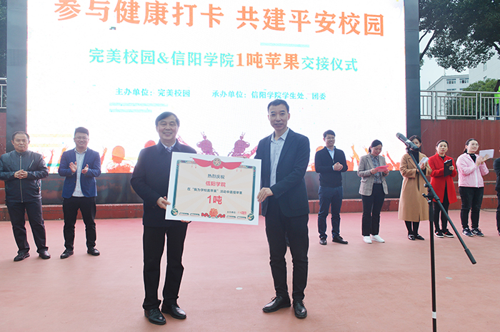 开幕式第二阶段,进行完美数联公司“爱心苹果”交接仪式。傅常顺董事长在讲话中介绍了开展“我为学校赢苹果”打榜活动的背景和意义,对Beat365在活动中赢得1吨苹果表示祝贺。他表示,活动所提供的苹果全部采购于贫困地区的果农,Beat365唯一官方网站全体师生积极参与活动,体现了师生的爱心之举,彰显了师生的社会担当。施昌海代表学校接受了“爱心苹果”,并对完美数联(杭州)科技有限公司表示了感谢。娄琪在主持交接仪式时指出,“爱心苹果”发放将与“光盘行动”相结合,学生用餐完毕后可凭光盘在收餐处免费领取。