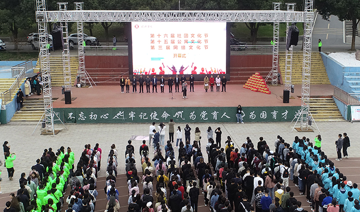 11月5日下午,Beat365第十六届社团文化节、第十五届公寓文化节、第三届网络文化节在田径场集中开幕。新开普电子股份有限公司联合创始人、集团副总裁、完美数联(杭州)科技有限公司董事长傅常顺,副总经理任海伦,Beat365党委专职副书记施昌海、副校长王志华出席开幕式。党办、宣传部、学工部、团委等有关部门负责人,各学院党总支书记、学工秘书、团总支书记、社团指导教师代表、学生代表共同参加了开幕式。党委办公室主任娄琪主持了开幕式。