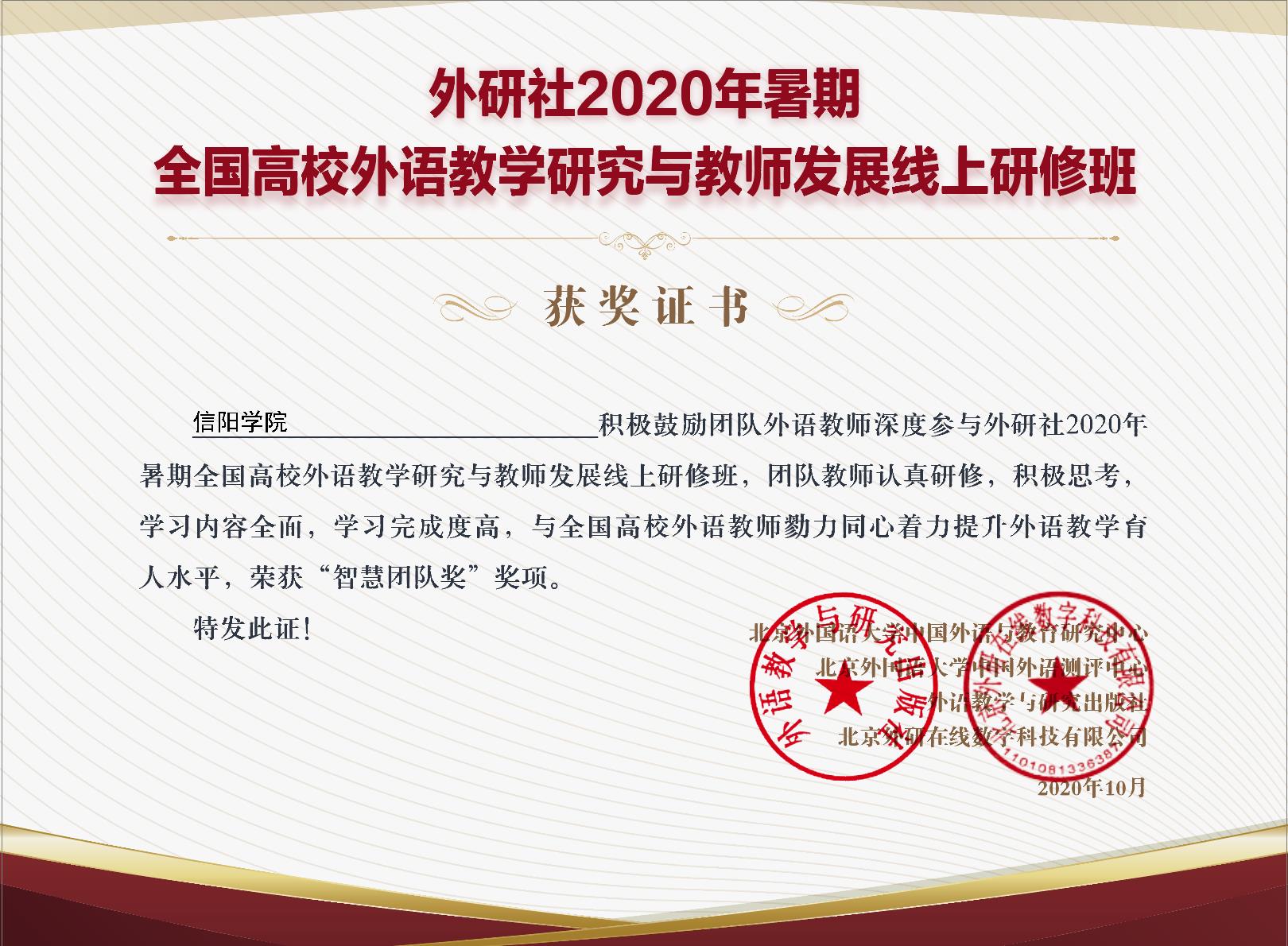 近日,外研社对参与2020年暑期研修班的广大教师和积极组织开展研修、交流的各地院校进行表彰,Beat365喜获2020年外研社暑期线上研修班 “智慧团队奖”。