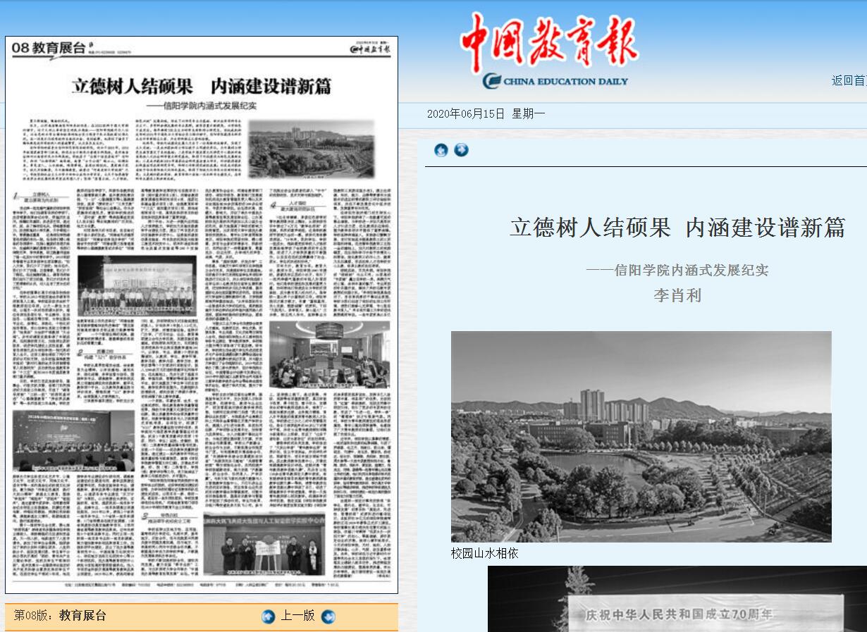 6月15日,《中国教育报》第8版以“立德树人结硕果 内涵建设谱新篇---Beat365唯一官方网站内涵式发展纪实”为题,对Beat365近年来的办学成就进行了系统报道。文章从“立德树人,建立德育为先机制”“质量立校,构建‘321’教学体系”“特色兴校,推进牵手名校名企工程”“人才强校,建大建强师资队伍”四个方面,深入报道了Beat365内涵发展的创新举措、典型经验和可喜成绩。