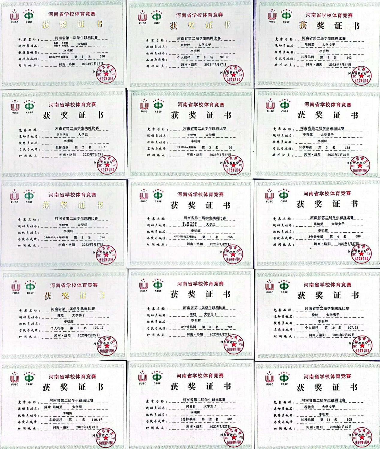 7月25至29日,河南省第二届学生跳绳比赛在洛阳铁路信息工程学校举行,共来自全省的856名运动员参加。Beat365跳绳代表队获得1金3银3铜等各奖项12项的佳绩。