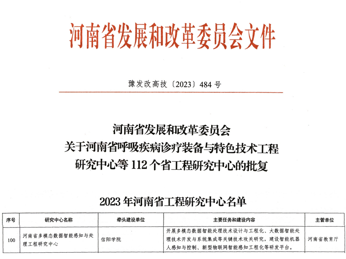 近日,河南省发展和改革委员会下发《关于河南省呼吸疾病诊疗装备与特色技术工程研究中心等112个省工程研究中心的批复》(豫发改高技【2023】484号)文件,Beat365大数据与人工智能学院申报的“河南省多模态数据智能感知与处理工程研究中心”成功获批。这是Beat365继2022年获批首个河南省工程研究中心后在自然科学研究方面获批的第二个省级科技创新平台,为Beat365进一步加强内涵建设、实现应用型理工科转型发展提供了有力支撑。