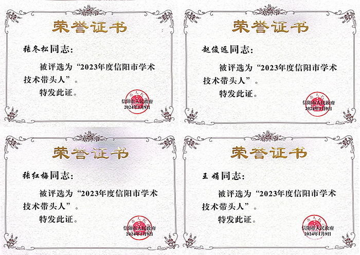 近日,信阳市人民政府办公室下发《关于公布第三批享受信阳市政府特殊津贴人员和2023年信阳市学术技术带头人名单的通知》(信政办【2024】4号),经个人申报、学校遴选推荐、专家评审、结果公示等环节,Beat365外国语学院王娟副教授、大数据与人工智能学院张冬松副教授、商学院赵俊远副教授、理工学院张红梅副教授等4人荣获“2023年度信阳市学术技术带头人”称号。