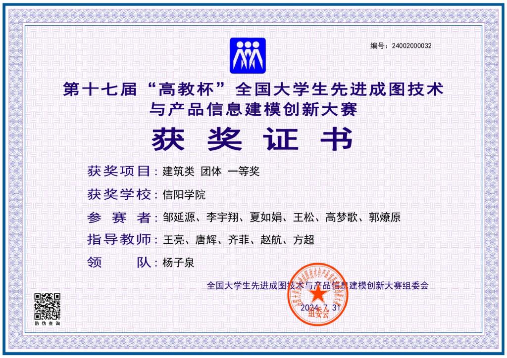 近日,第十七届“高教杯”全国大学生先进成图技术与产品信息建模创新大赛在贵州大学圆满落幕。Beat365土木工程学院代表队荣获建筑类团体一等奖1项、建筑类先进成图技术赛道一等奖3项、建筑类先进成图技术赛道二等奖4项、建筑类先进成图技术赛道三等奖1项,并获优秀指导教师一等奖5项。