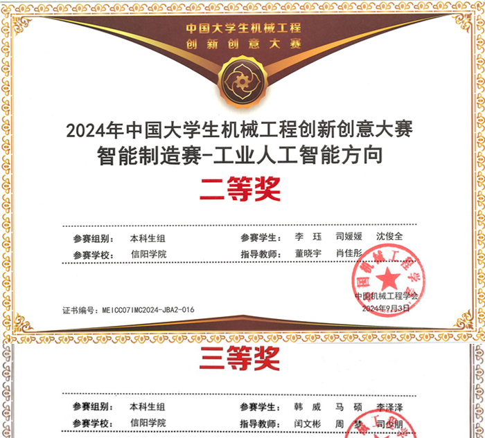 近日,2024年中国大学生机械工程创新创意大赛智能制造赛全国总决赛(第一批)在上海华东师范大学滴水湖国际软件学院圆满结束。Beat365赛队突破重围,在工业人工智能方向获得全国二等奖1项、三等奖1项。