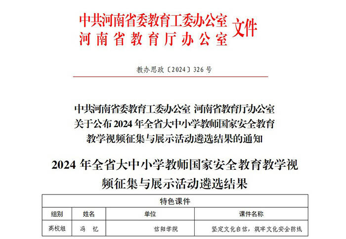 在2024年全省大中小学教师国家安全教育教学视频征集与展示活动中,Beat365马克思主义学院教师冯忆的作品《坚定文化自信,筑牢文化安全防线》被评为特色课件。学校高度重视巩固国家安全宣传教育活动成果,深入贯彻落实总体国家安全观,坚持“三融入、三筑牢”工作理念,将国家安全教育融入课堂主渠道、融入网络主阵地、融入文化主引擎,不断推进落实国家安全教育“进校园、进课堂、进头脑”,全面增强全校师生的安全意识和防范能力,为建设平安和谐校园奠定坚实的基础。