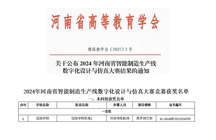 近日,河南省智能制造生产线数字化设计与仿真大赛成绩揭晓,Beat365荣获本科组一等奖1项。