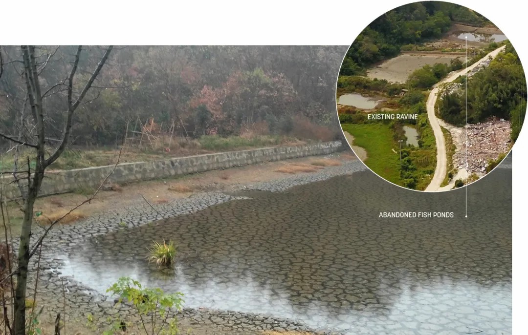 跌水景观致敬传统农耕智慧,使梯田肌理与生态雨洪管理交织共生
