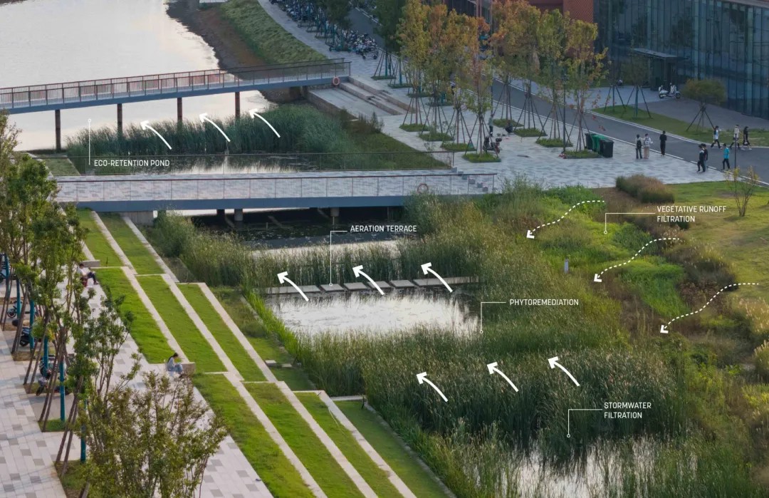 景观设计编织出一系列灵活的空间,每个空间都兼具美学与生态功能