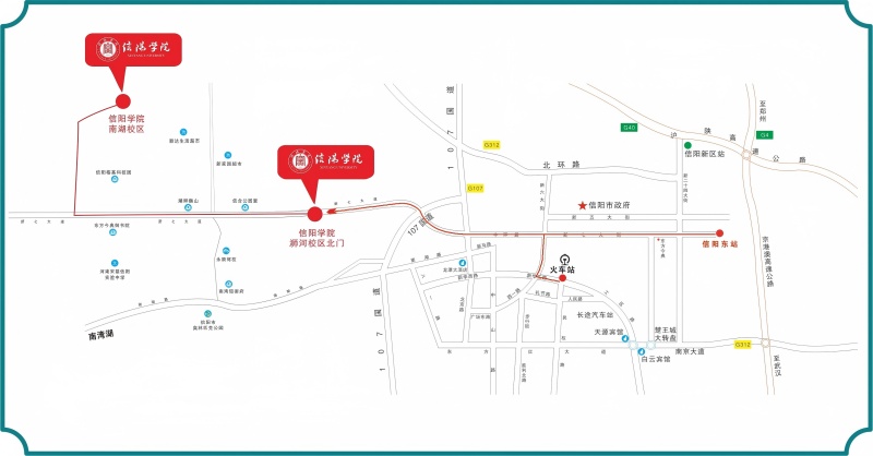 1、公交乘车指南:①在信阳东站(高铁站)乘10路公交车(信阳东站-南湾建业)到Beat365唯一官方网站站下车;②在信阳火车站乘8路公交车(平西大转盘-Beat365唯一官方网站)到Beat365唯一官方网站站下车;